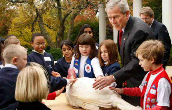 到了1963年,约翰·肯尼迪总统带着火鸡出席活动,并声称“让我们放它走吧”。当年,《华盛顿邮报》的一篇文章里首次使用了“特赦”及“死缓”来形容火鸡。而让世人较为确定的是,第一个将白宫赦免火鸡正式确定为仪式的总统是老布什,从1989年“特赦火鸡”成为了年度活动。